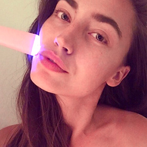 Cleanse face to remove all dirt and makeup. ESPADA’s blue light is most effective on clean, dry skin.