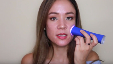 Blue-light and T-Sonic™ pulsations activate on skin contact. Hold the device on the blemish for 30 seconds.